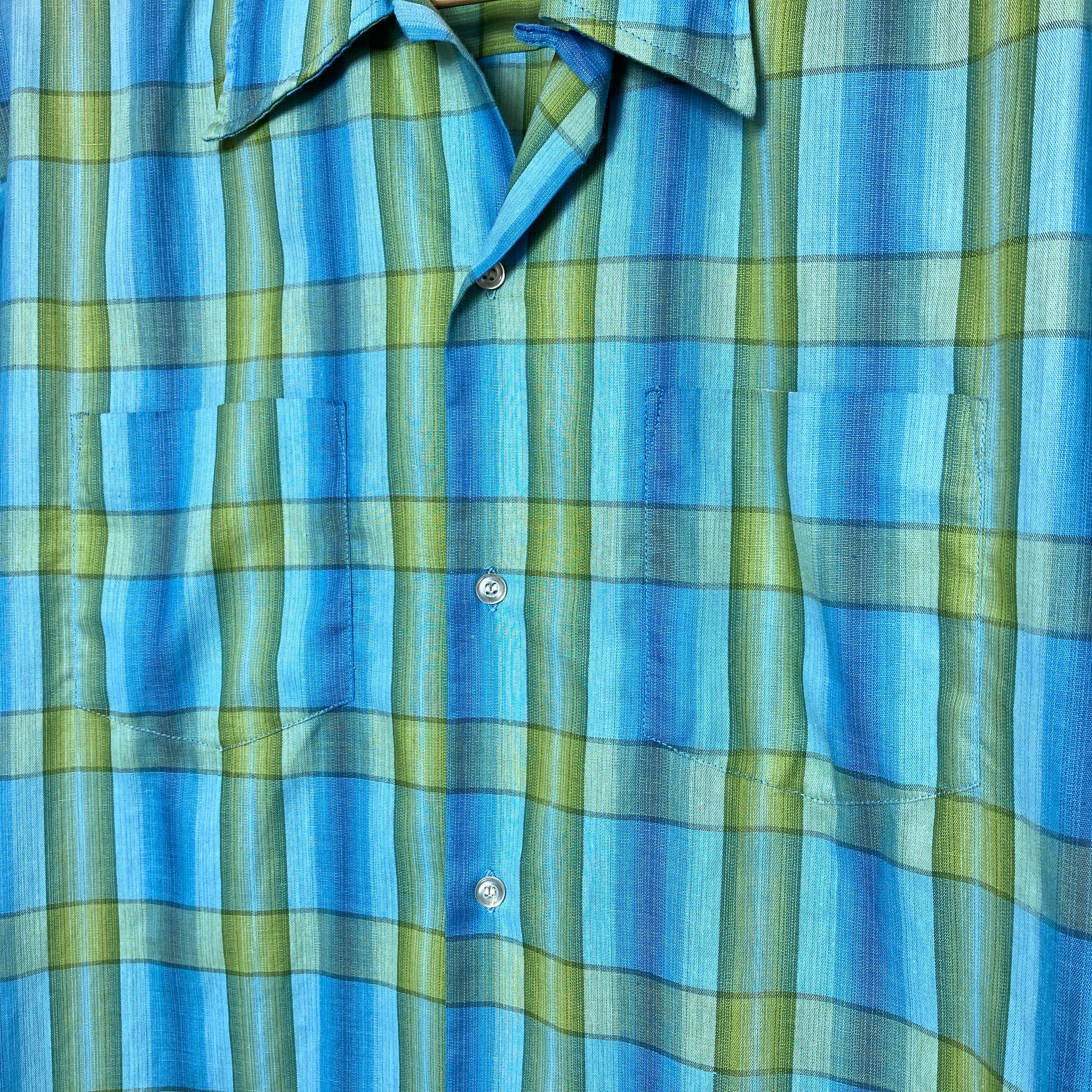 【60's】TOWN CRAFT(Penneys)ombre check open collar box shirt -L size- *good condition*